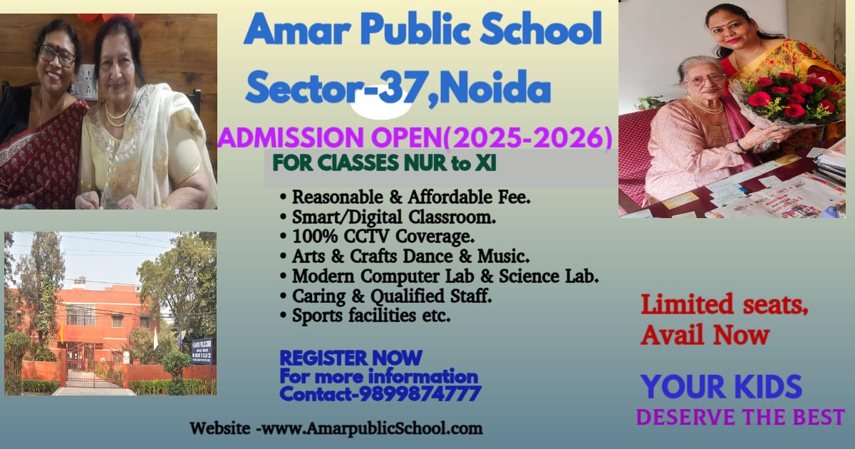 Amar Public School, Noida had its origin in the form of a Primary School, established by Amar Educational Society in 1987. Amar Educational Society at present have two schools one of which is affiliated to Central Board of Secondary Education, Delhi. Its owes its inception to the profound vision of its founder of Mrs. Raj Bhandari and Brig (Retd) ML Bhandari. They are the driving force and the guiding light behind this project.